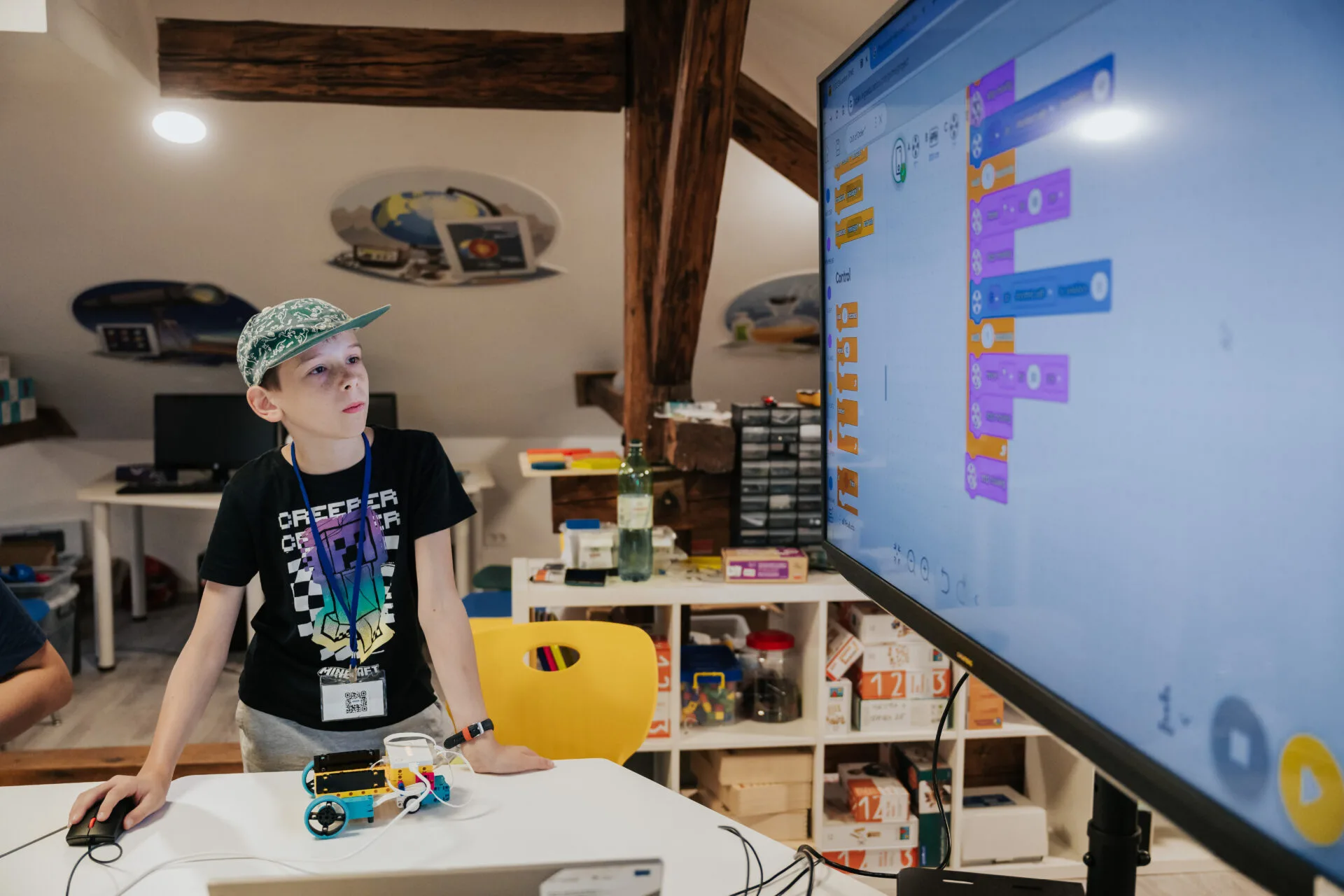 Tijekom sedmodnevnog boravka u samom središtu hrvatske gaming industrije, svaki je polaznik izradio vlastitu video igru koristeći profesionalne softvere: Blender za 3D modeliranje, Kritu za 2D crtanje i Unity za programiranje, a pohađali su i radionice o sigurnosti na internetu. Gaming edukacija je bila organizirana u tri razine – osnovnu, naprednu i naprednu+ – uz individualizirani pristup i stalnu podršku stručnjaka iz industrije video igara. Dnevni raspored uključivao je jutarnju tjelovježbu, višesatne gaming edukacije, kreativne i STEM aktivnosti te bogat večernji program – od VR igara i kvizova do promatranja zvijezda, filmskih večeri i zajedničkih druženja. Poseban je doživljaj bio edukativni izlet u Park prirode Lonjsko polje. Polaznicima je bio osiguran smještaj u učeničkom domu, tri obroka dnevno, zdravi međuobroci te 24-satna podrška i skrb tima.