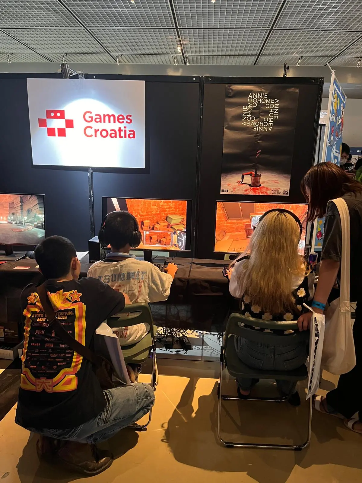 Ekipa iz Hrvatske uspjela je osigurati značajan izložbeni prostor, gdje su na dva monitora prikazivali trailer za Go Home Annie, dok su posjetitelji na dva računala mogli isprobati demo verziju igre. Štand je bio ispunjen promotivnim materijalima, uključujući brošure i razne goodiese iz Games Croatia, a posebnu pažnju privukle su vizitke u stilu SCP kartica s QR kodom koji je vodio direktno na Steam stranicu igre.